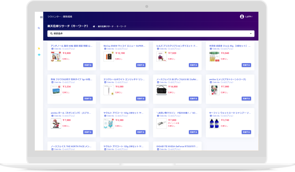 ラクハンターは、モールで売れている商品の在庫切れを自動的にチェックするツールです。